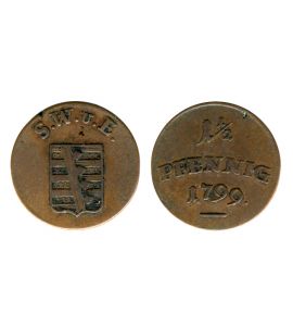Sachsen-Weimar-Eisenach, HerzogtumKarl August I. (1758-1775-1828) Cu 1 1/2 Pfennig 1799, Eisenach Koppe 617, Slg. Mers. 4012 ssArt-Nr. altseowe261701799c30,00 €