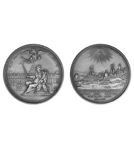 Kaiser Leopold I. 1657 - 1705Taler ohne Jahr (1688) Rathaustaler: Rathaus mit offenen Türen, davor sitzende Noris / Stadtansicht von Osten