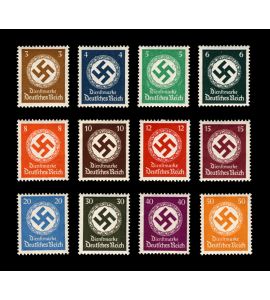 Deutsches Reich - DienstmarkenDienstmarken der Partei I Adler auf Sockel mit Wasserzeichen 4 Ausgabetag 26. Januar 1938 1, 3, 4, 5, 6, 8, 12, 16, 24, 30 und 40 Pfennig 11 Werte Michel-Nummer D 144 - 154 PostfrischArt-Nr. bdrd154s**d75,00 €