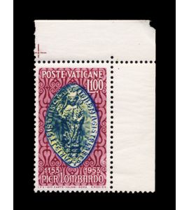 Pier Lombardo Ausgabetag 19. Dezember 1952 100 Lire Michel-Nummer 211 postfrisch, Bogenecke oben rechts, rückseitig minimale gummifreie Stelle